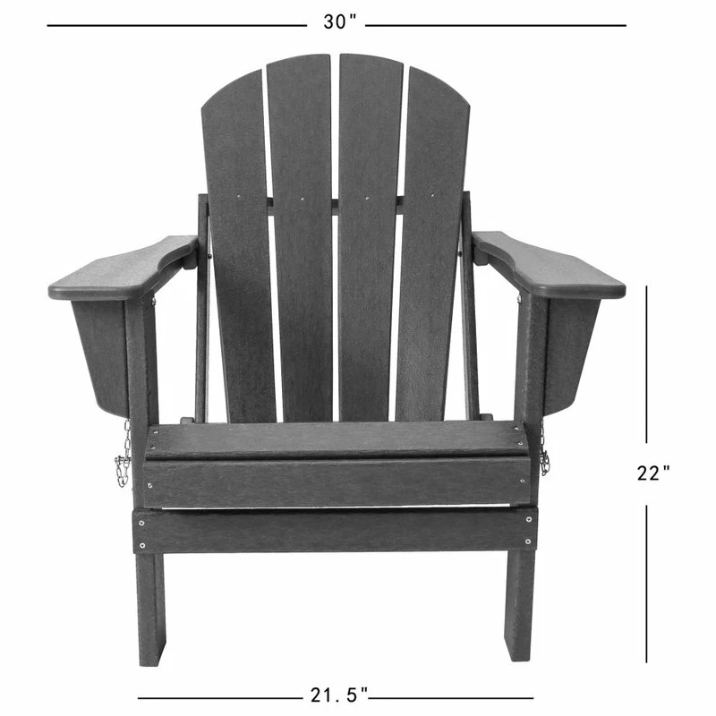 SPECIFICATIONS. 1pc Poly Adirondack Chair. Storage Friendly: Foldable Design. Durable Weather-Resistant Polyethylene Plastic. Classic Comfortable Adirondack Design. Fade and UV Resistant. Simple Assembly Required