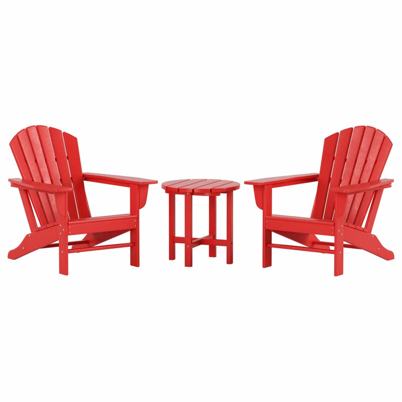 2PCS OUTDOOR POLY ADIRONDACK CHAIRS WITH 1PC MATCHING SIDE TABLE make a perfect Lounger, Lounge Seat for the Balcony, Deck, Garden, Lawn, Outside/Inside or Indoor, Poolside, Backyard, Front yard, Beach, etc. Comfortable Wide Arms. Simple Assembly Required. Poolside, Backyard, Front yard, Beach, etc. Comfortable Wide Arms. Simple Assembly Required.